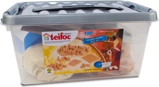 Zažite pocity skutočných staviteľov so stavebnicou Teifoc, ktorá obsahuje 100 kusov stavebných prvkov. Zamiešajte maltu, natrite tehly a postavte domy alebo hrady. Zábava začína a končí tam, kde len chcete.