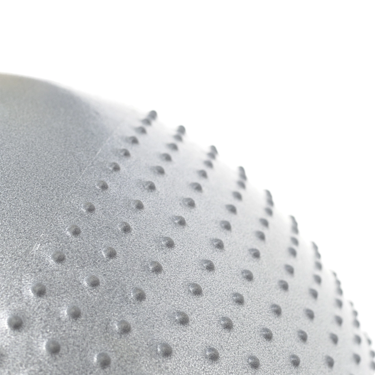 Polovica lopty s masážnymi výstupkami príjemne stimuluje pokožku, podporuje cirkuláciu a urýchľuje regeneráciu po tréningu.