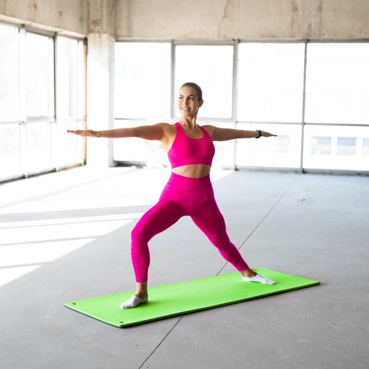 Textúrovaný povrch zaisťuje istý grip pri statických pozíciách aj dynamickom tréningu – ideálny na jogu, pilates, strečing a posilňovanie.
