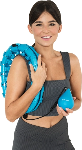Inteligentný masážny kruh HMS je navrhnutý pre pohodlný a bezpečný tréning doma aj vonku. Segmenty s pružnými masážnymi klobúčikmi tlmia vibrácie a zároveň príjemne masírujú oblasť pása. Integrovaná koľajnica s vozíkom na guľôčkových ložiskách zabezpečuje plynulý pohyb, zatiaľ čo 400 g závažie na dĺžkovo nastaviteľnej šnúrke umožňuje jednoduché riadenie intenzity – čím dlhšia šnúrka, tým vyššia odstredivá sila a náročnejší tréning.