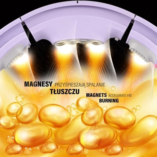 Každý diel je z vnútornej strany vybavený pružinovými masážnymi výstupkami, ktoré pohlcujú vibrácie a príjemne masírujú oblasť brucha a bokov. Špeciálny 13. diel s 8 negatívne polarizovanými magnetmi podporuje prekrvenie a prúdenie lymfy, čím prispieva k rýchlejšiemu spaľovaniu tukov a spevneniu problémových partií.