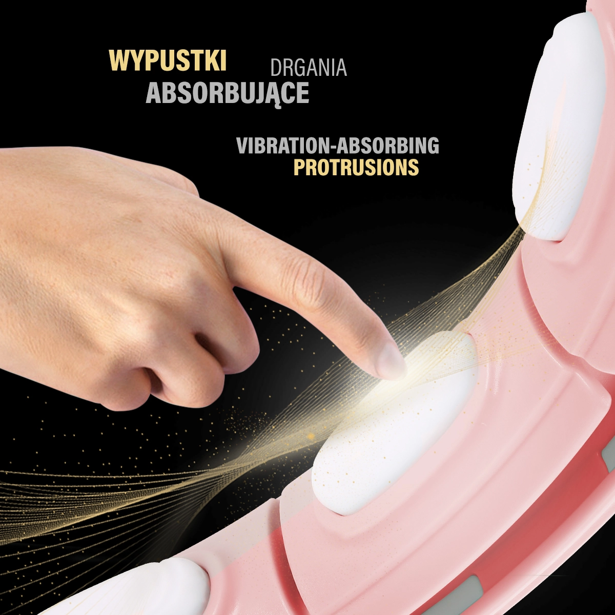 Každý diel je z vnútornej strany vybavený masážnym výstupkom s magnetom, ktorý počas cvičenia príjemne masíruje oblasť pása, podporuje prekrvenie a prispieva k aktivácii metabolizmu. Kvalitná kombinácia materiálov PVC, ABS, PP, TPR a ocele zaručuje dlhú životnosť a pohodlné používanie. Obruč je jednoducho zložiteľná, stabilná a plynulo kĺže vďaka kolieskam s guľôčkovými ložiskami.