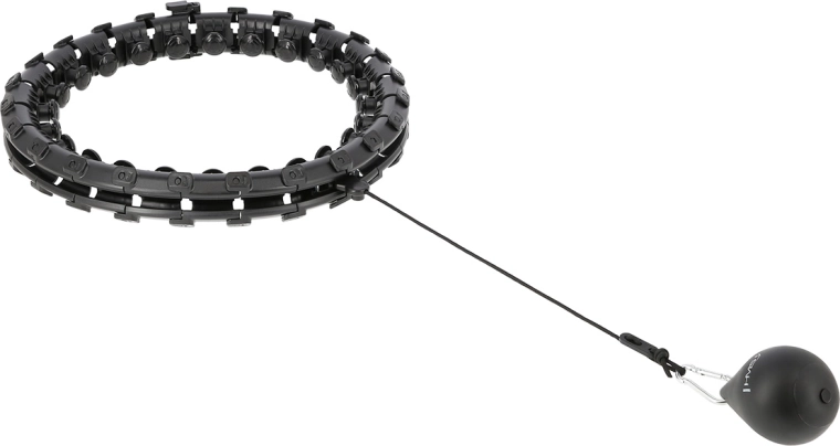 Inteligentná hula hoop obruč HMS HHW01 je tvorená z 24 zacvakávacích segmentov s vnútornou koľajnicou. Po obvode sa pohybuje kotva so šiestimi kolieskami a na nastaviteľnej šnúrke (22–38 cm) je uchytené závažie s hmotnosťou 400 g. Vďaka tomu vytvára plynulý odpor a efektívnu odstredivú silu – čím dlhšia šnúrka, tým vyššia intenzita. Obruč je vhodná pre obvod pásu 46–105 cm a vnútorný priemer možno nastaviť v rozmedzí 15–34 cm. Masážne klobúčiky s pružinami tlmia vibrácie a zároveň príjemne masírujú oblasť pásu.