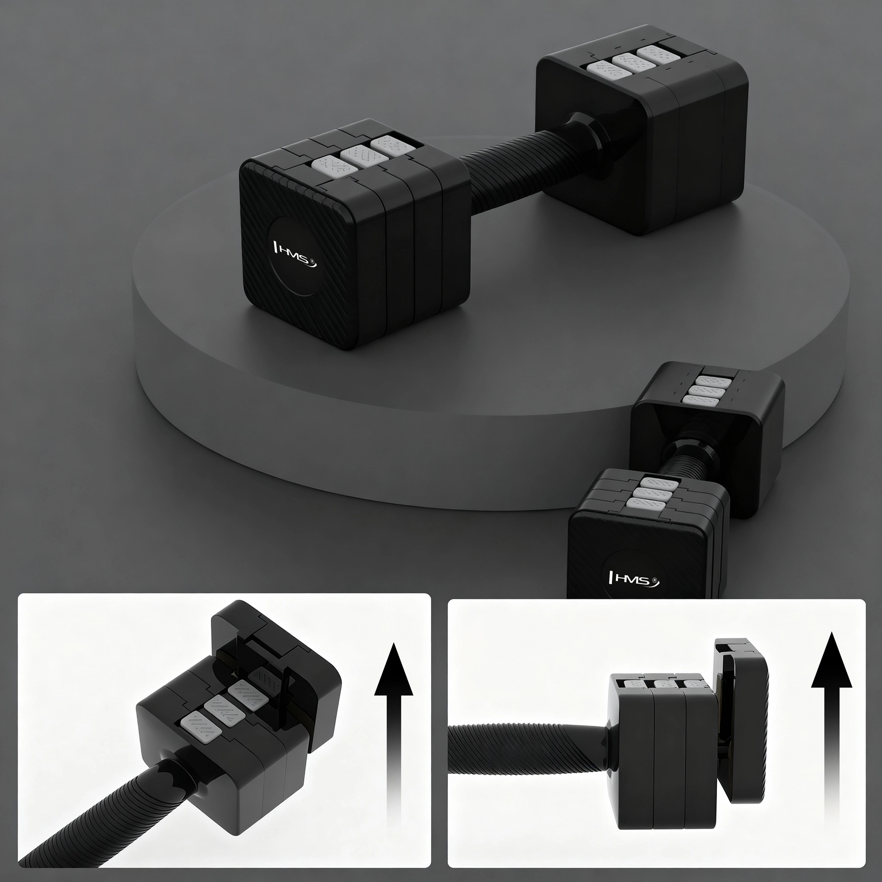 Nastaviteľné jednoručky HMS HL02 prinášajú maximálnu všestrannosť do každej domácej posilňovne. Pomocou praktického tlačidla v okamihu pridáte alebo odoberiete segment a plynulo meníte záťaž v rozsahu 1,36–5 kg na kus. Štvorcová konštrukcia závaží zabraňuje kotúľaniu po podlahe a umožňuje použiť jednoručky aj ako stabilné stojky.