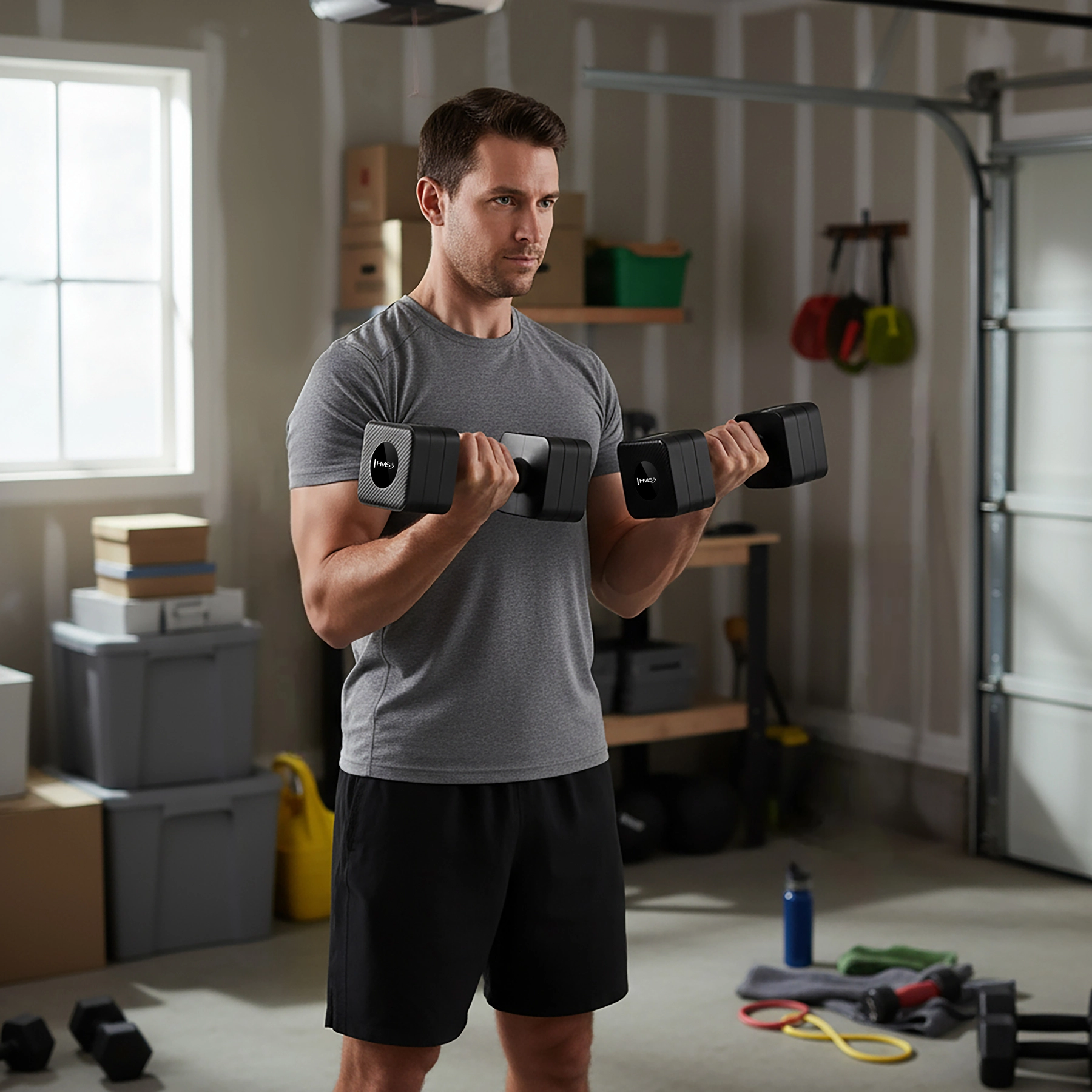 Zefektívnite svoj domáci tréning s jednoručkami HMS HL02 – kompaktná sada 2 × 5 kg, ktorá počas pár sekúnd zmení záťaž. Jedna dvojica nahrádza päť párov klasických činiek, šetrí miesto aj čas. Vďaka rýchlemu nastaveniu hmotnosti, protišmykovej rukoväti a stabilnému štvorcovému tvaru (anti-roll) sú ideálne na kardio, silový tréning aj rehabilitáciu.