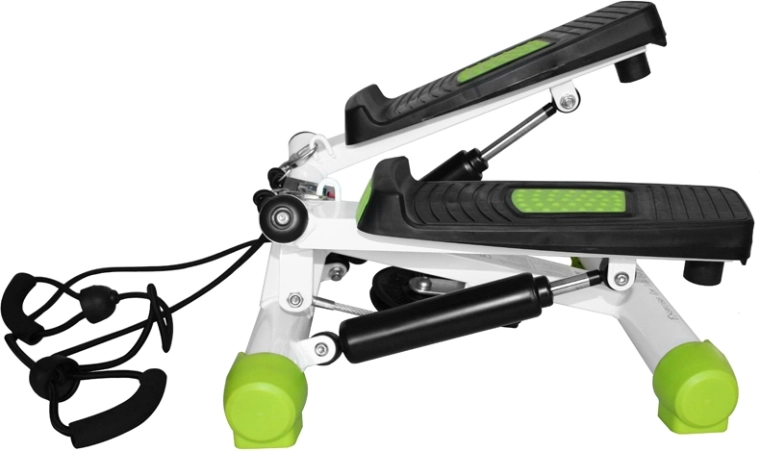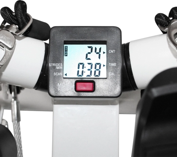 Integrovaný LCD počítač prehľadne ukazuje čas, kroky za minútu, celkový počet krokov a spálené kalórie. Nastaviteľná výška kroku umožňuje prispôsobiť intenzitu cvičenia. Stabilná oceľová konštrukcia, protišmykové nášľapy a hydraulické piesty zaisťujú plynulý a tichý chod – ideálne do bytu.