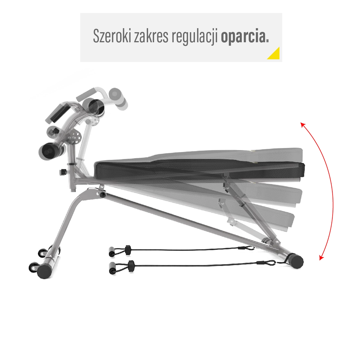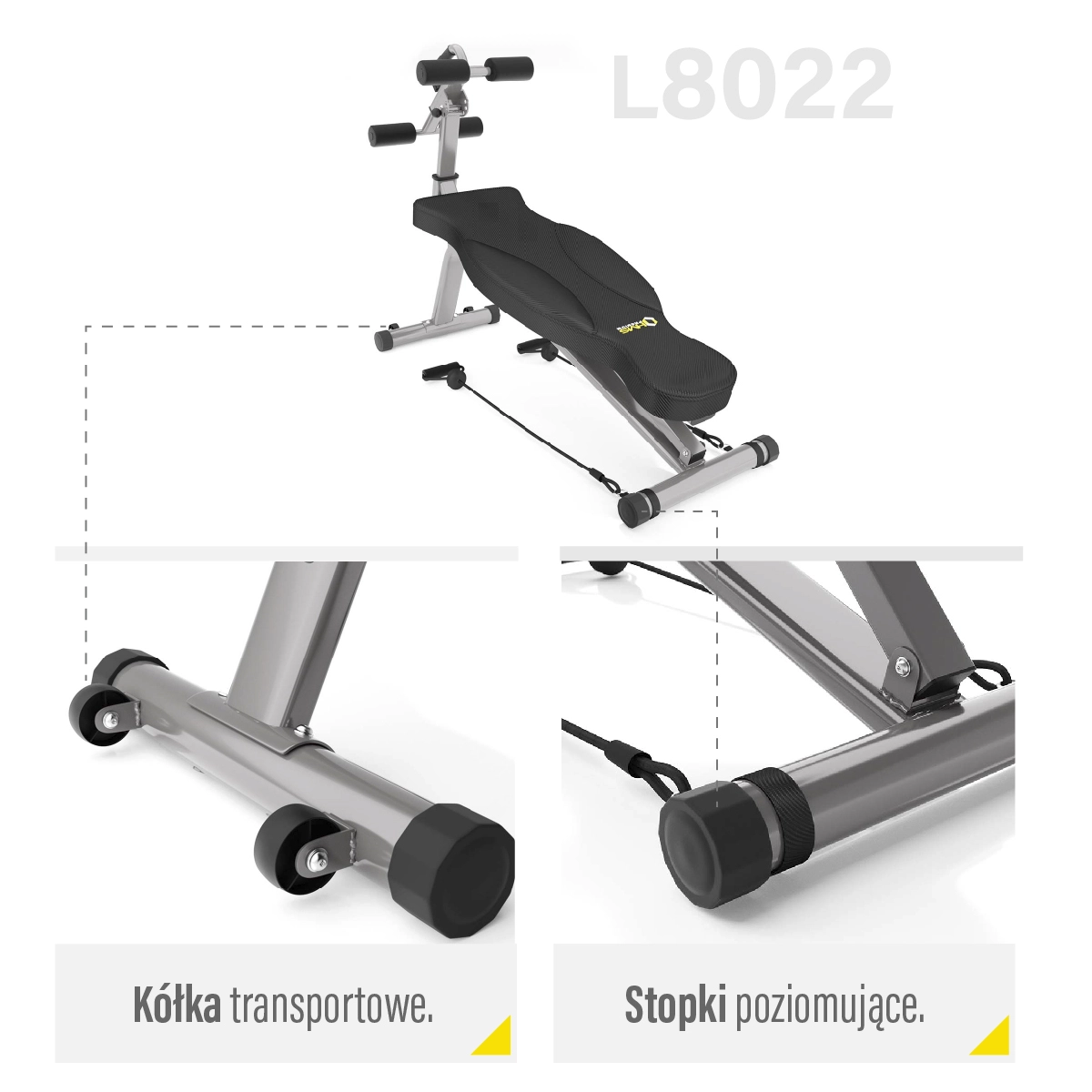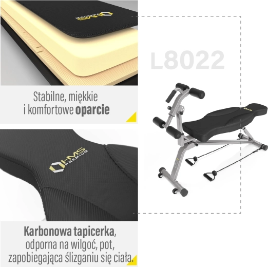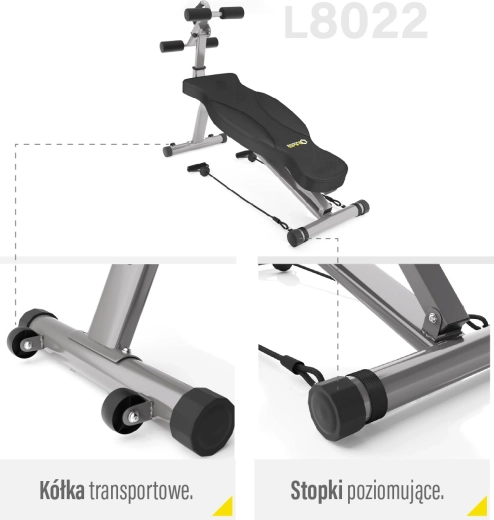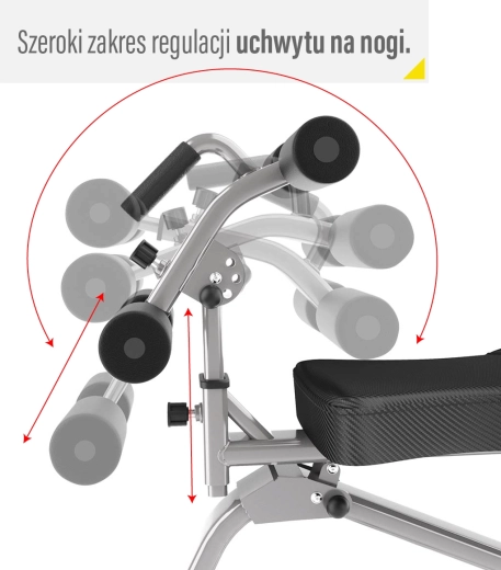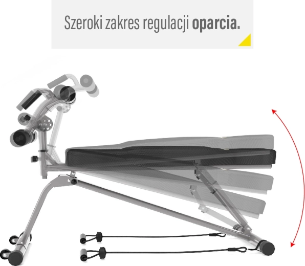 Výsuvný rám so zarážkami umožňuje presné prispôsobenie vašej postave – nastaviť možno uhol v 4 polohách, výšku v 3 polohách a zarážku nôh v 3 vzdialenostiach. Ergonomické čalúnenie zo syntetickej kože s karbónovým vzhľadom je odolné voči potu a minimalizuje šmykanie. Dva priložené expandéry rozširujú možnosti tréningu o základné ťahové a tlakové cviky, zatiaľ čo transportné kolieska uľahčujú manipuláciu.