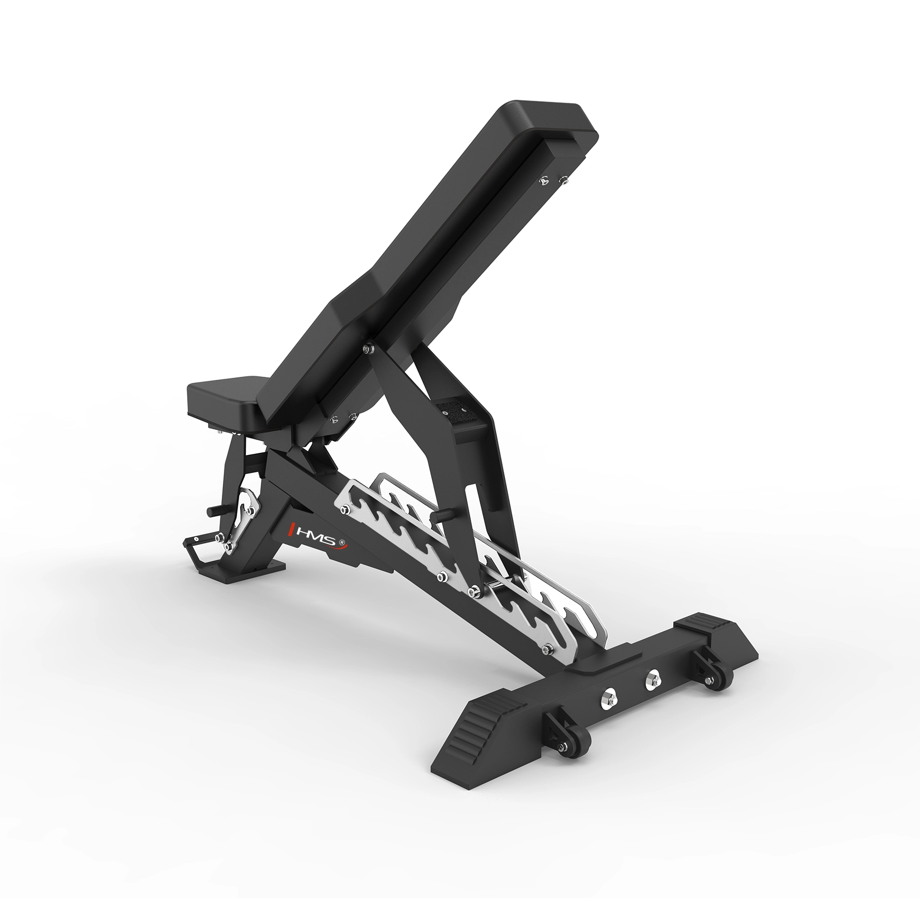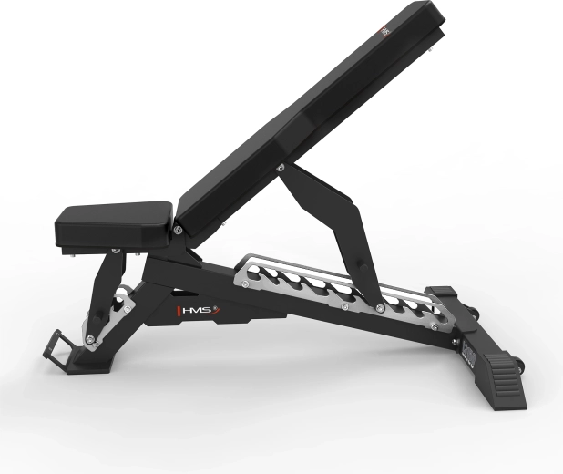 HMS L3150 je prémiová variabilná lavica navrhnutá pre komerčné aj náročné domáce využitie. Vďaka presnému polohovaniu operadla (0–90°) a sedadla (0–30°) zvládne rozsah cvikov od tlakov na rovnej, šikmej aj negatívnej lavici až po jednoručky a shoulder press. Chrómované, laserom vyrezávané zuby umožňujú isté a rýchle aretácie, zatiaľ čo dvojitá výstuha rámu pridáva maximálnu tuhosť a bezpečnosť.