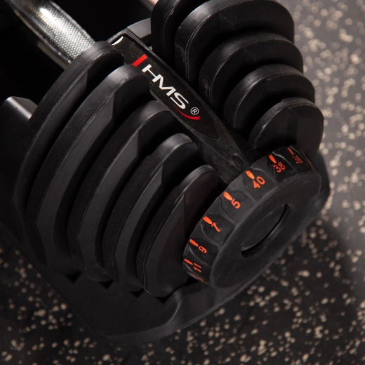 HMS SR80 je inteligentné riešenie pre silový tréning bez kompromisov. Inovatívny systém uchytenia kotúčov umožňuje počas sekúnd nastaviť požadovanú hmotnosť – stačí činku odložiť do stojana, pootočiť voličom a pokračovať v sérii. Jedna činka tak nahradí celú sadu vďaka rozsahu 2,8–37,26 kg.