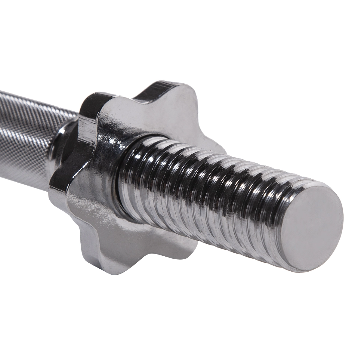 Tvrdená oceľ zaisťuje vysokú nosnosť a odolnosť, zatiaľ čo chrómovaný povrch chráni proti korózii a opotrebovaniu pri každodennom tréningu.
