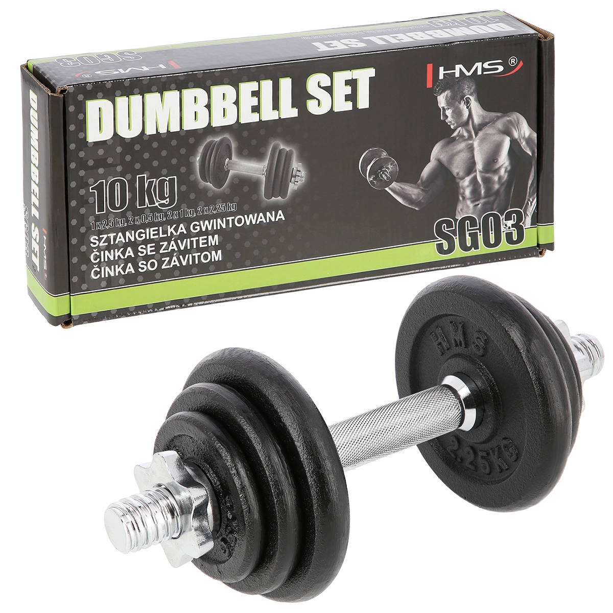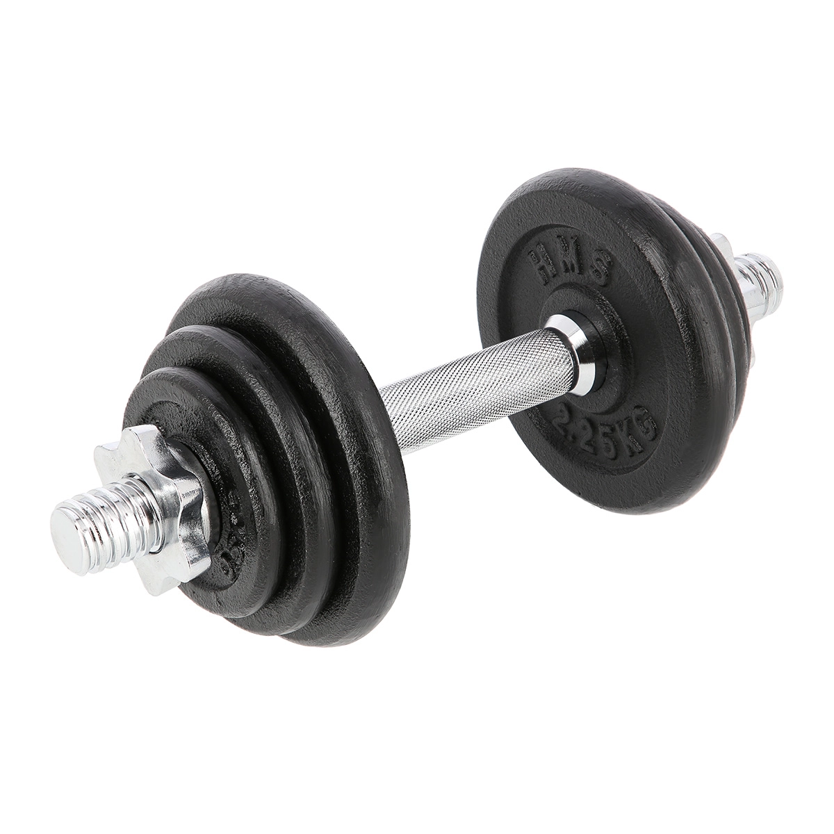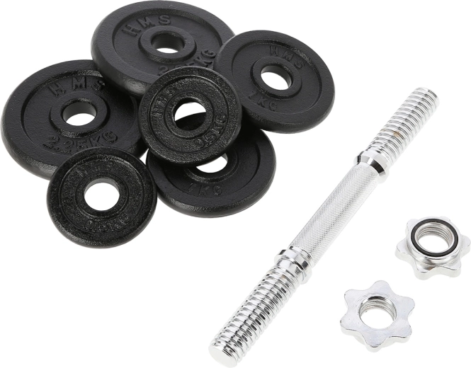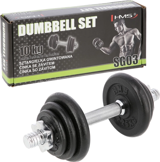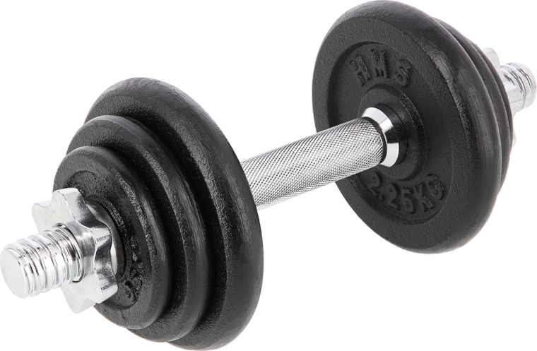 Univerzálna jednoručná nakladacia činka s hmotnosťou 10 kg od značky HMS na cvičenie doma aj vo fitku. Vďaka závitovým koncom a hviezdicovým maticiam je výmena kotúčov rýchla a predovšetkým bezpečne zaistená. Liatinové kotúče a drážkovaný, nešmykľavý úchop poskytujú stabilitu, istotu a presné nastavenie záťaže pre rôzne cviky.