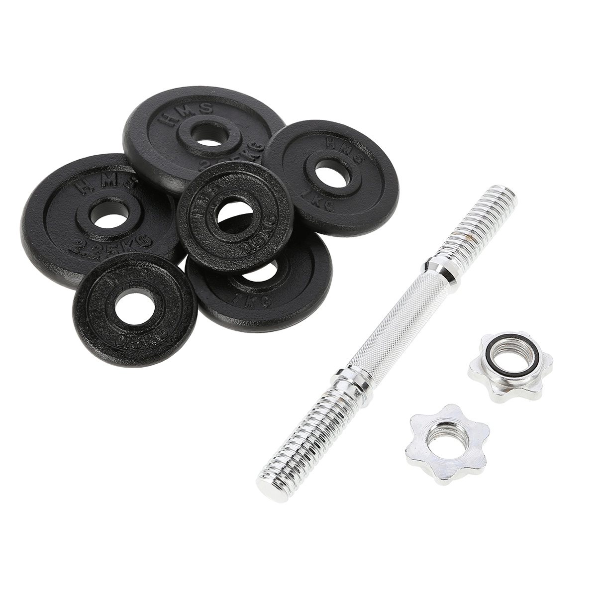 - Osa 1×, matice 2×, kotúče 0,25 kg 2×, 1 kg 2×, 2,25 kg 2×