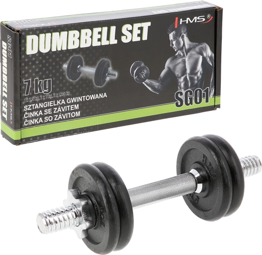 Činka HMS SG01 ponúka spoľahlivú konštrukciu pre silový tréning paží, ramien aj hrudníka. Závitové konce s hviezdicovými maticami a gumovým pásikom držia kotúče pevne na mieste, takže sa môžete sústrediť na výkon. Drážkovaná (knurl) rukoväť poskytuje istý úchop aj pri intenzívnom cvičení.