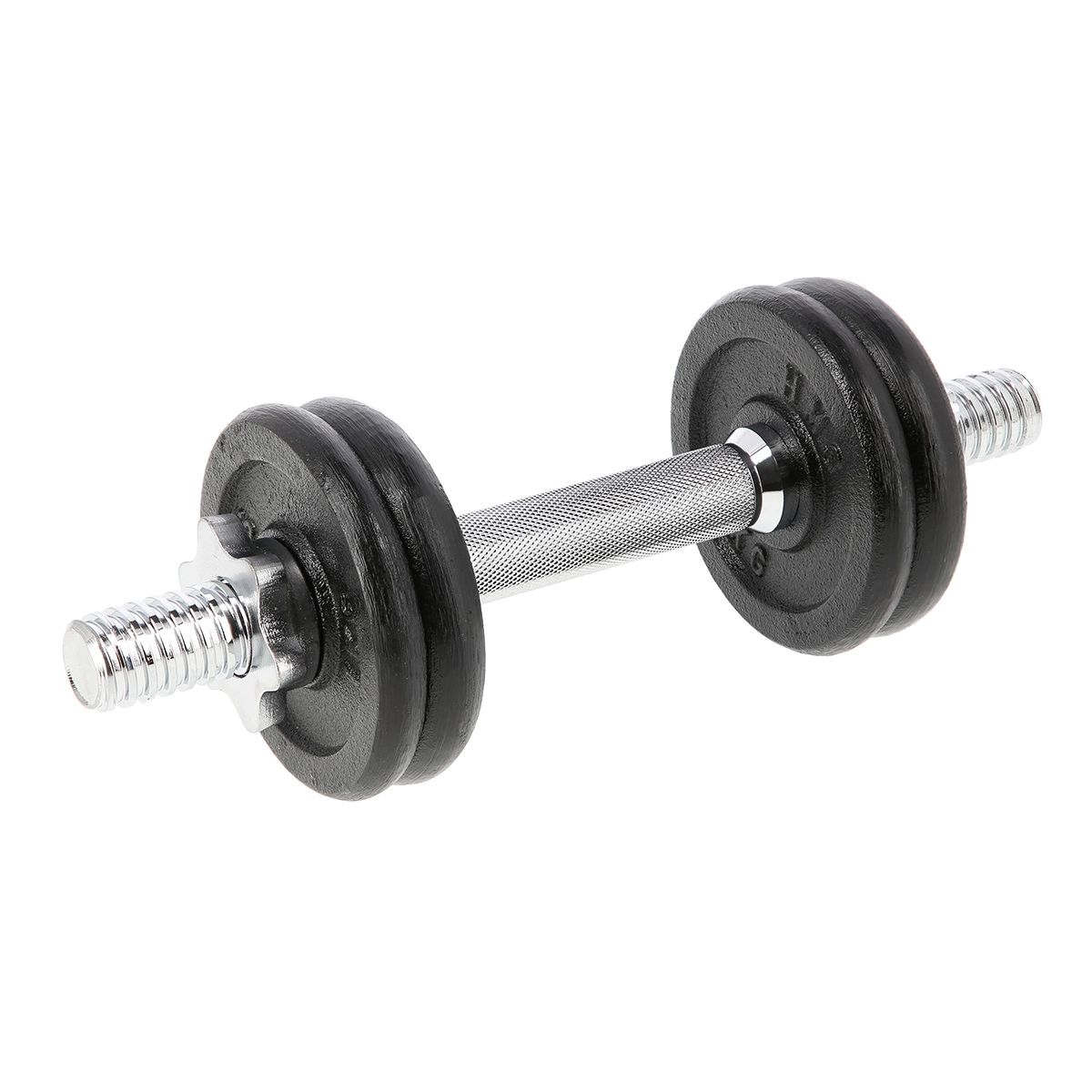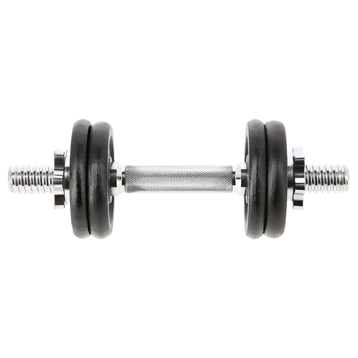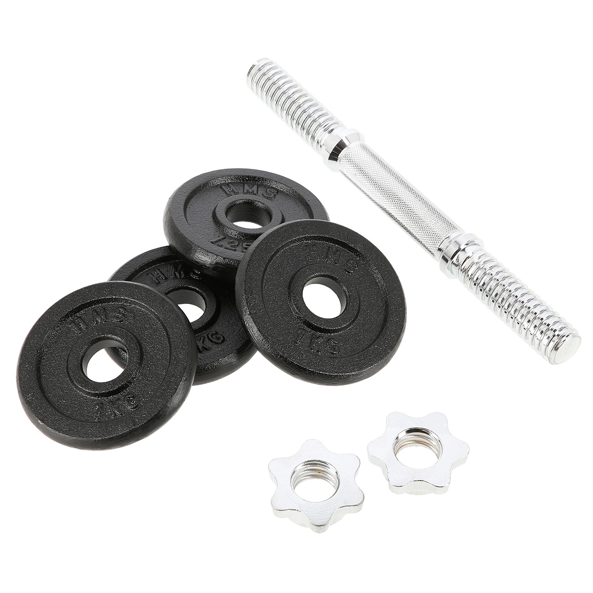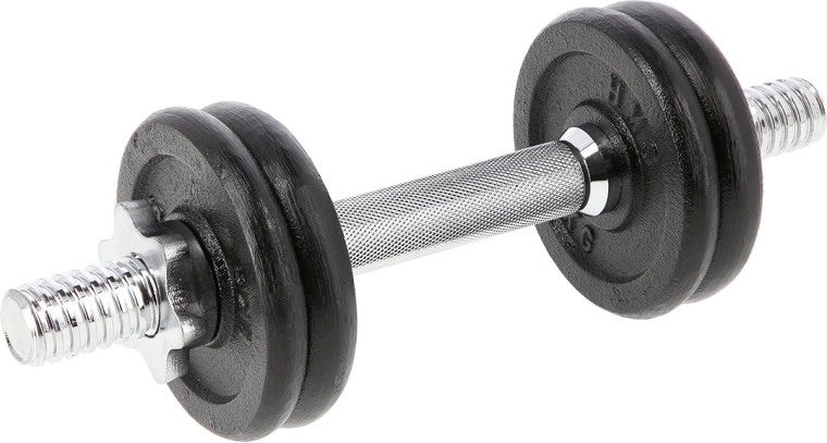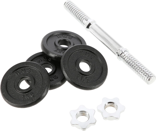 Súčasťou balenia sú liatinové kotúče 1 kg a 1,25 kg, vďaka ktorým jednoducho upravíte celkovú hmotnosť jednoručky až na 7 kg. Sada je kompaktná, odolná a vhodná na domáce použitie aj doplnenie existujúcej výbavy.