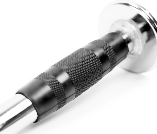 Textúrované gumové rukoväte minimalizujú kĺzanie a zaisťujú pohodlie aj pri ťažkých sériách.