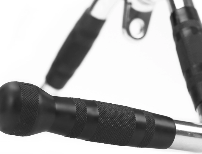 HMS UW11 je odolné V madlo navrhnuté na efektívne posilňovanie chrbtových svalov, bicepsov a tricepsov. Vďaka kĺbovému oku na pripojenie ku kladke a ergonomickým, gumou potiahnutým rukovätiam s priemerom 35 mm poskytuje pevný a pohodlný úchop aj pri vyššom zaťažení.