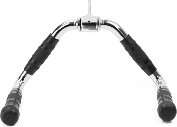 V-tvar s kĺbom rozširuje možnosti tréningu: prítahy, sťahovanie kladky, tricepsové stláčanie aj ďalšie ťahové cviky.