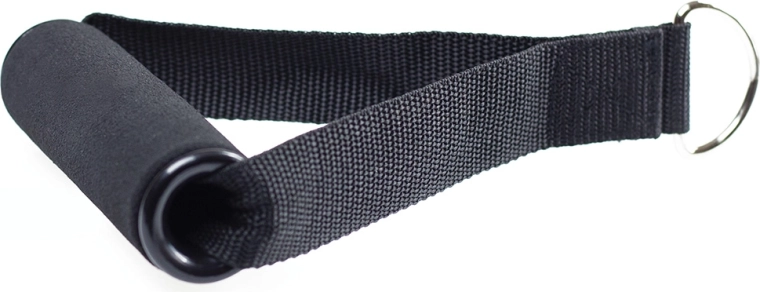 Pevná nylonová tkanina a kovové krúžky zabezpečujú bezpečné pripojenie k odporovým gumám či kladkám.