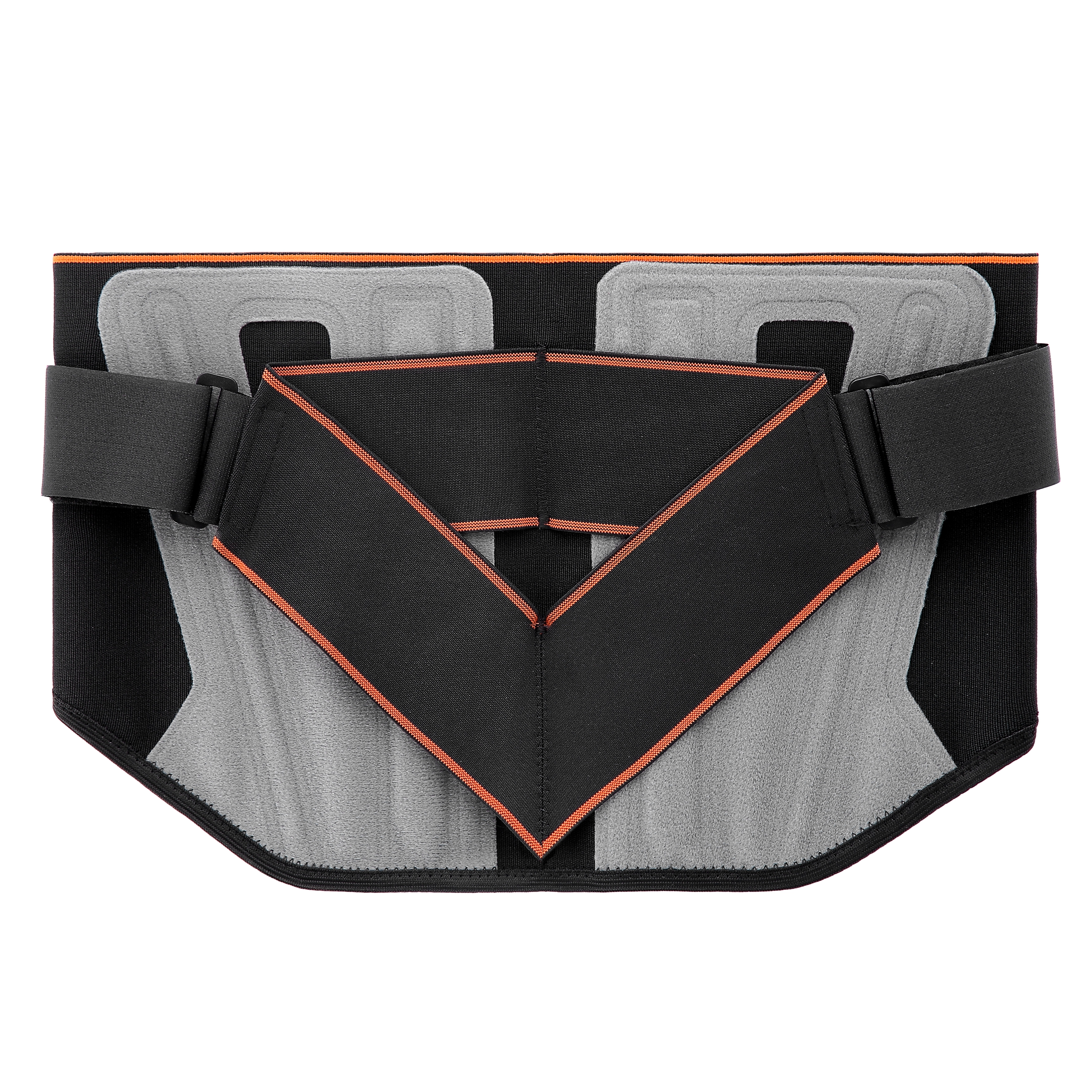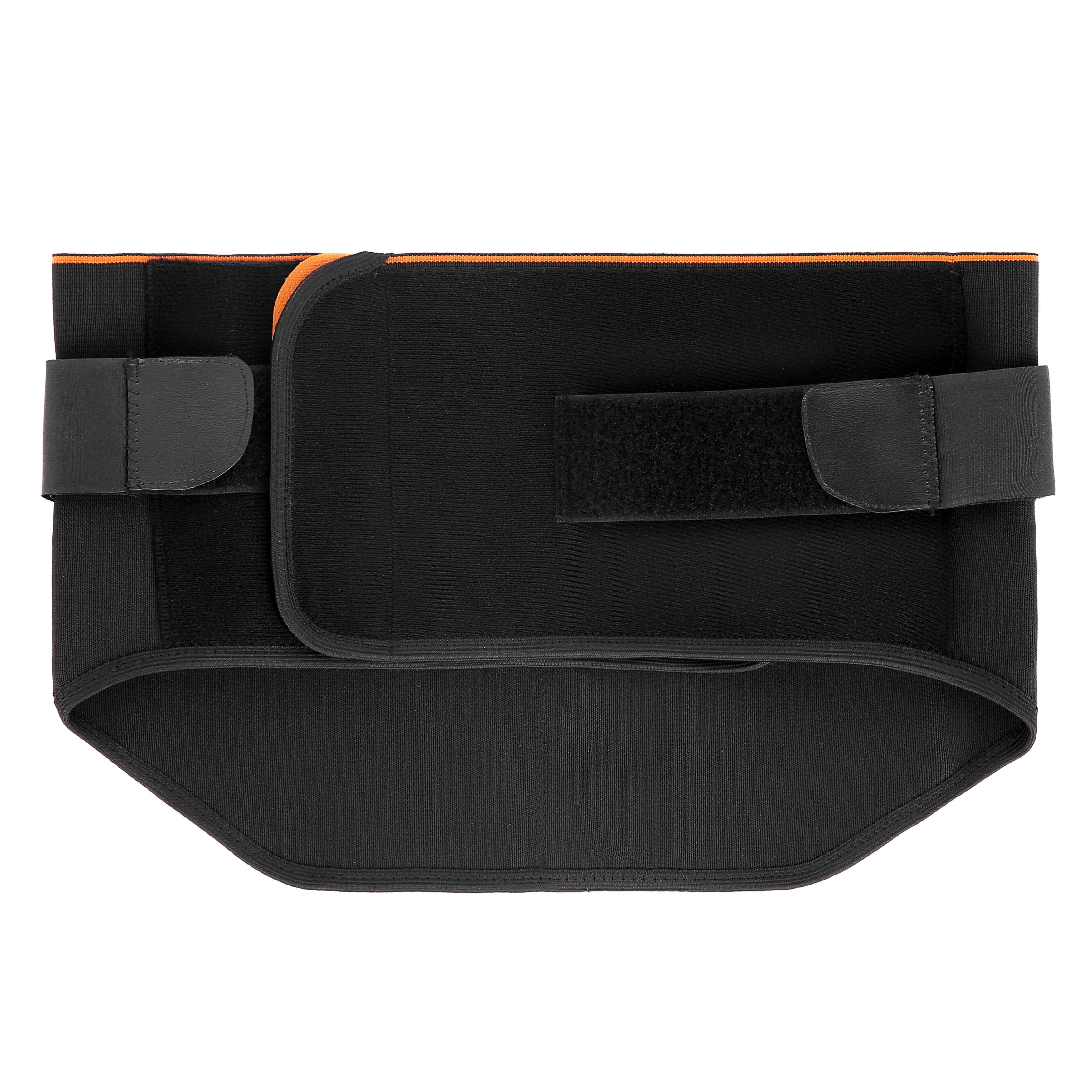 Široký elastický pás s háčikovým uzáverom umožňuje plynulo nastaviť kompresiu a prítlak v bedrovej oblasti pre istotu pri cvičení aj v práci.