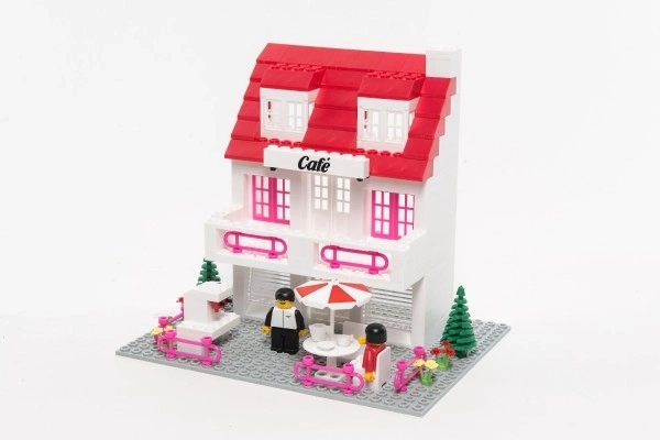 Postavte si vlastnú cukráreň z kociek CHEVA s balkónom a vonkajším posedením. Stavebnica ponúka 215 dielikov v praktickom vedierku, prehľadný návod a postavičky čašníka aj zákazníčky. Ideálne na kreatívne hranie a rozvoj fantázie detí od 6 rokov.