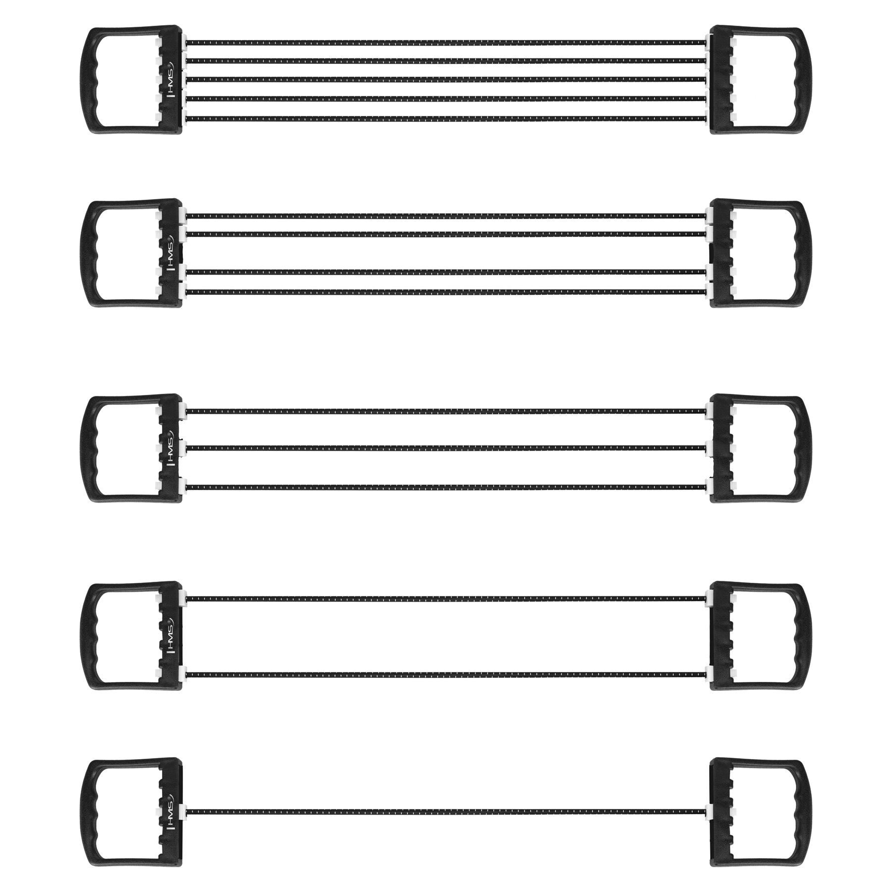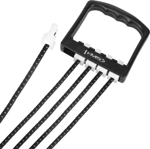 Univerzálny gumený expandér HMS s piatimi vymeniteľnými strunami na cvičenie hornej časti tela. Vďaka možnosti uberať či pridávať struny ľahko nastavíte premenlivý odpor na posilnenie paží, chrbta a hrudníka, ale aj na rehabilitačné cvičenia. Ergonomické protišmykové rukoväte z odolného plastu zaisťujú istý úchop a pohodlie pri tréningu doma aj na cestách.