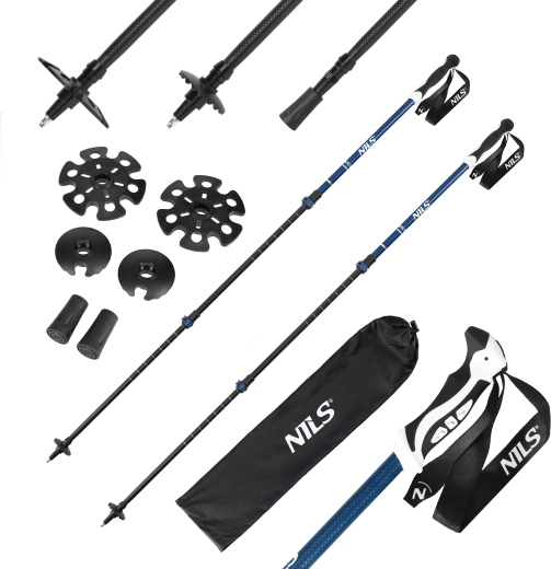 V balení nájdete dve sady tanierikov, gumové krytky hrotov a transportné puzdro NILS – pripravené na chodníky, sneh aj prevoz.