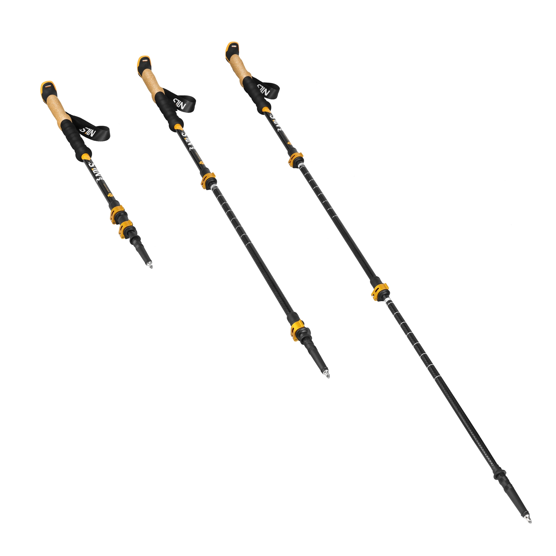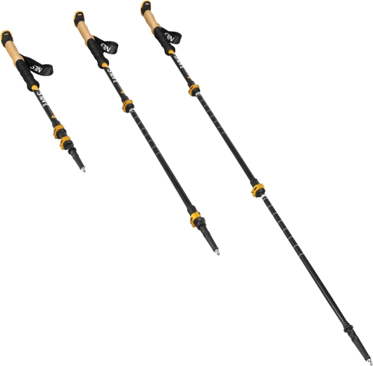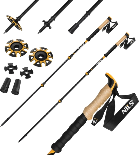 Model NILS TK8605 kombinuje ľahkosť, pevnosť a stabilitu vďaka kvalitnej zliatine hliníka 7075 a trojdielnej konštrukcii. Ergonomické rukoväte z prírodného korku a peny EVA príjemne sedia v ruke, pohlcujú vibrácie a zaisťujú istý úchop aj pri dlhých pochodoch.
