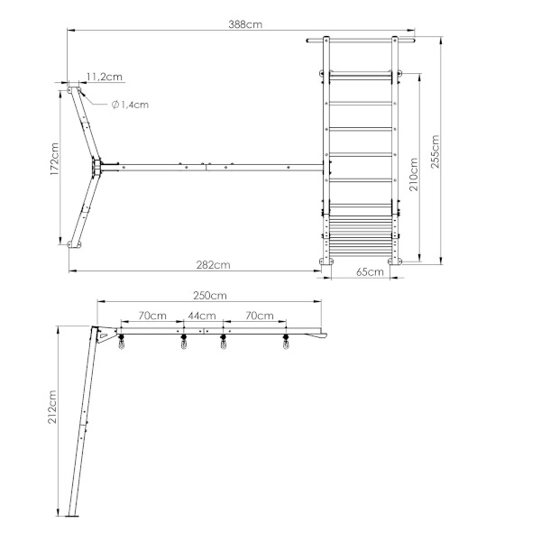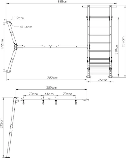 Oceľová konštrukcia pre 2 hojdačky Marbo MO-018 je spoľahlivý rám navrhnutý na každodenné používanie. Ložiskové závesy zabezpečujú hladké a tiché hojdanie, zatiaľ čo práškový lak chráni povrch pred koróziou, dažďom i UV žiarením. Vďaka univerzálnemu uchyteniu ľahko zavesíte rôzne typy hojdačiek či hojdacích sietí.