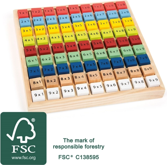 Farebná a odolná učebná pomôcka pre deti od 4 rokov, ktorá zábavnou formou rozvíja počítanie a logické myslenie. Vďaka kockám s príkladmi si deti precvičia násobilku, zlepšia jemnú motoriku a naučia sa sústredeniu. Vyrobené zo 100% FSC certifikovaného dreva pre bezpečnú a udržateľnú hru.