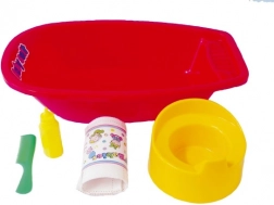 Dostupná je v dvoch farebných variantoch, takže si deti môžu vybrať podľa svojich preferencií. Rozmery plastovej vaničky sú 40 x 9,5 cm, ideálne pre bábiky rôznych veľkostí. Je to skvelý darček pre každú malú slečnu, ktorá sa rada hrá na mamičku.