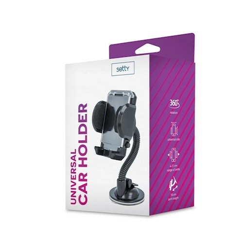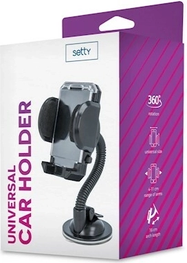 Univerzálny držiak SETTY je ideálnym riešením pre bezpečné a pohodlné umiestnenie telefónu alebo GPS počas jazdy. Silná prísavka zaisťuje pevné a stabilné uchytenie na čelné sklo, zatiaľ čo flexibilná konštrukcia umožňuje optimálne nastavenie uhla pre lepšiu viditeľnosť a ovládanie.