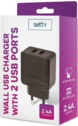 Kompaktná sieťová nabíjačka SETTY s dvoma USB portmi umožní súčasné nabíjanie dvoch zariadení výkonom až 2,4 A. Elegantné čierne prevedenie, univerzálny vstup 100–240 V a spoľahlivý výstup 5 V / 2,4 A z nej robia ideálnu voľbu na každodenné používanie doma aj na cestách.