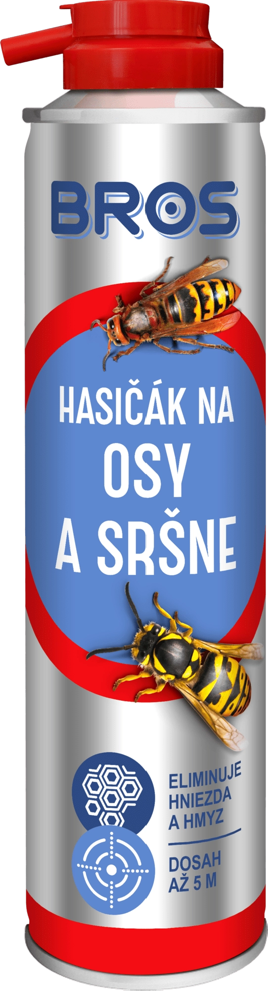 Rýchlo účinný sprej BROS proti osám a sršňom vo forme „hasiaceho prístroja“ poskytuje okamžitý účinok a pôsobí ešte niekoľko dní po aplikácii. Vďaka silnému prúdu má dosah až 6 metrov, takže umožňuje bezpečné odstránenie hniezd z diaľky.