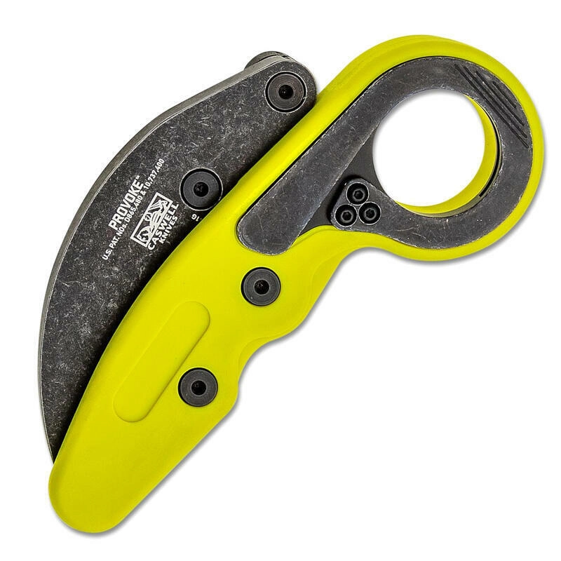 Inovatívny vreckový karambit CRKT Provoke Zap od dizajnéra Joea Caswella prináša kinematické otváranie palcom, zahnutú čepeľ Hawkbill z ocele 1.4116 s tmavou povrchovou úpravou a ľahkú rukoväť z materiálu Grivory v zelenej farbe. Ideálny ako taktický nôž, na sebaobranu aj každodenné EDC nosenie.