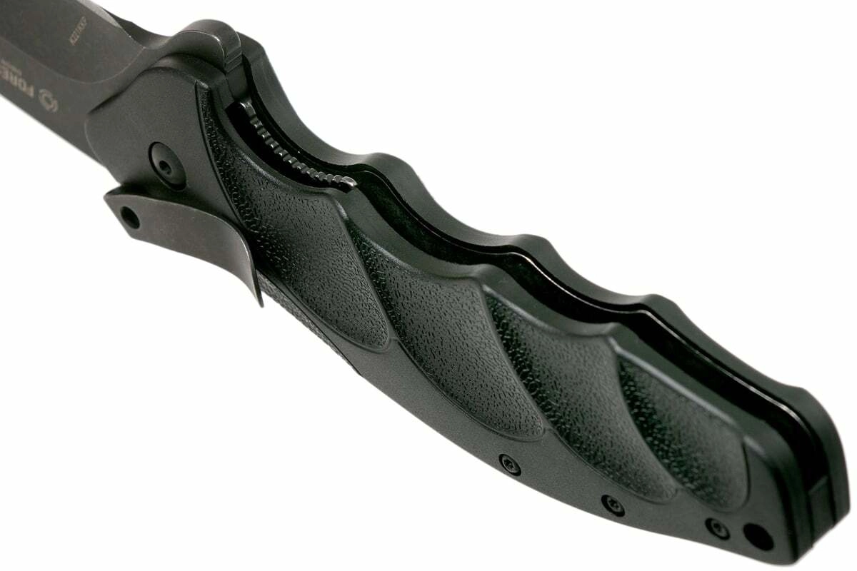 Ergonomická FRN rukoväť s výraznými drážkami na prsty zaručuje komfort a kontrolu aj pri dlhšej práci. Spoľahlivú bezpečnosť zabezpečuje Liner Lock, nechýba vreckový klip na diskrétne nosenie a otvor na šnúrku pre dodatočné istenie či personalizáciu.