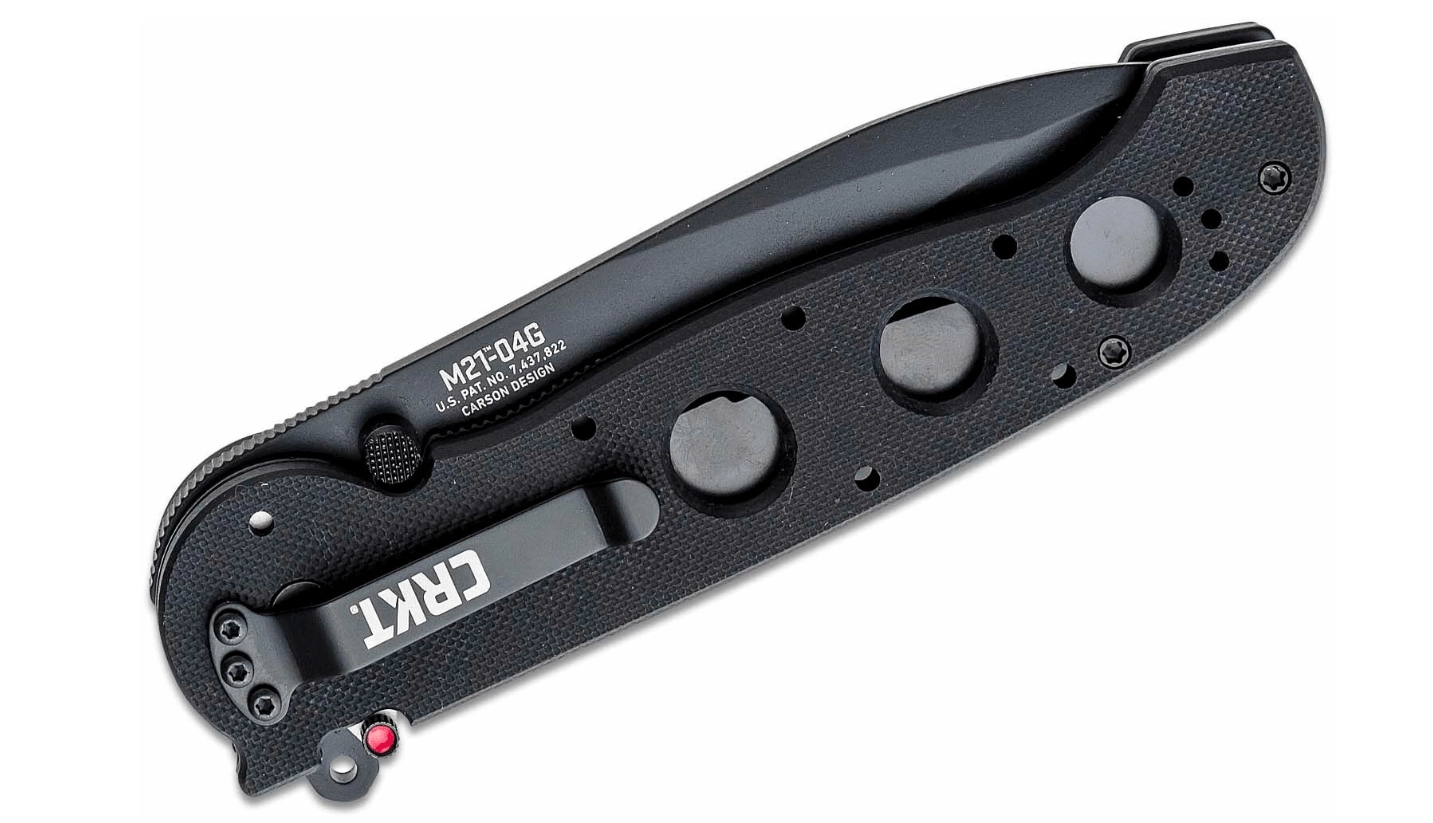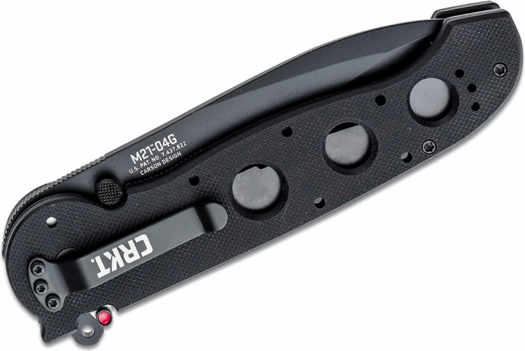 CRKT M21-04G je robustný taktický nôž pre používateľov, ktorí vyžadujú spoľahlivosť, bezpečnosť a rýchly prístup k čepeli. Čiernená čepeľ tvaru Drop Point z ocele 8Cr14MoV zaručuje vyvážený pomer ostrosti, odolnosti a jednoduchej údržby, zatiaľ čo povrchová úprava znižuje odlesky a zvyšuje odolnosť voči korózii.