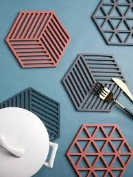 Šesťuholníkový tvar s diagonálnymi prierezmi dodáva podložke elegantný vzhľad a zároveň podporuje cirkuláciu vzduchu pre rýchlejšie chladnutie riadu.