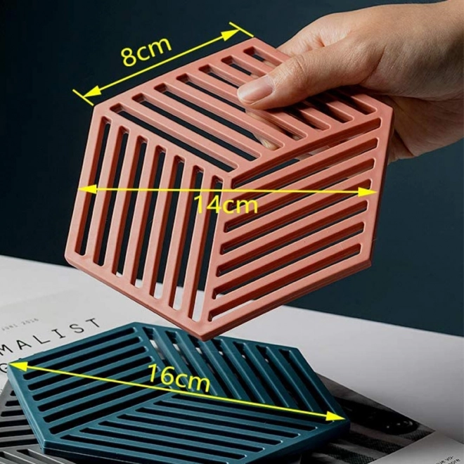 Táto odolná silikónová podložka je navrhnutá na každodenné používanie – bezpečne udrží horúce hrnce, panvice aj pekáče a zároveň chráni pracovné plochy pred poškodením teplom či poškriabaním. Minimalistický dizajn šesťuholníka s diagonálnymi prierezmi dodá vašej kuchyni moderný vzhľad.