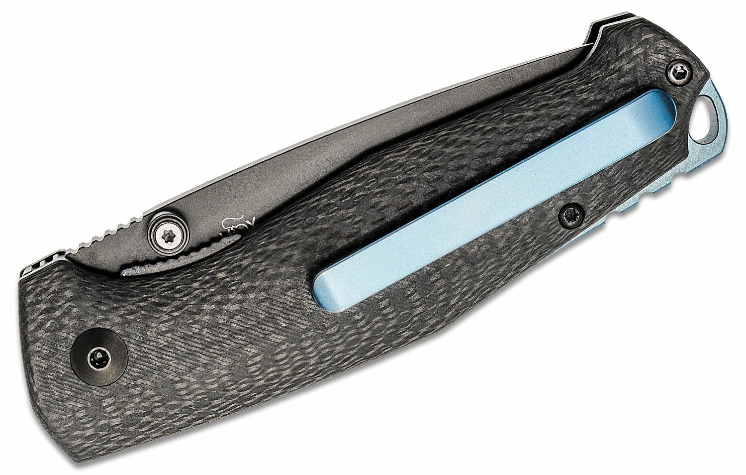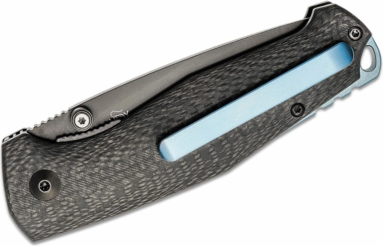 Ergonomicky tvarovaná rukoväť z uhlíkového vlákna s elegantnou modrou vložkou skvele sedí v ruke. Praktický vreckový klip umožní diskrétne nosenie, otvor na šnúrku rozširuje možnosti uchytenia. Nôž je ideálny na EDC, turistiku aj ľahké pracovné úlohy.