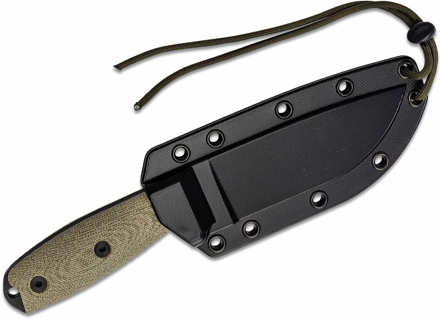 Legendárny ESEE Model 4 je robustný survival nôž s pevnou čepeľou z uhlíkovej ocele 1095 a čiernou povrchovou úpravou pre vyššiu odolnosť. Ergonomická rukoväť z Micarty v zelenej farbe ponúka istý úchop, zatiaľ čo plná tang a kvalitné puzdro z plastu zabezpečujú bezpečné nosenie aj náročné použitie v teréne.