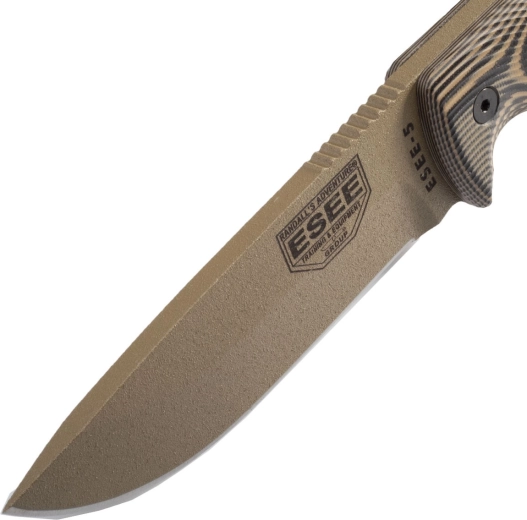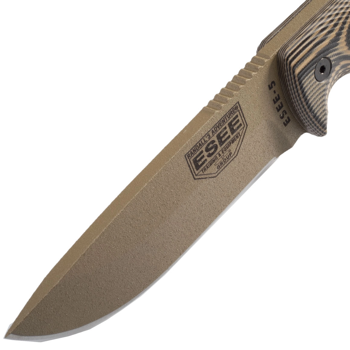 Nôž ESEE Model 5 vznikol pôvodne pre armádnych pilotov ako nástroj poslednej záchrany. Jeho 13,2 cm čepeľ z uhlíkovej ocele 1095 s práškovým povrchom Dark Earth výborne reže, štiepe aj spracúva drevo a zároveň je chránená proti korózii a oderu. Plná, priebežná rat-tail/full-tang konštrukcia dodáva maximálnu pevnosť a istotu pri tvrdej práci v teréne.