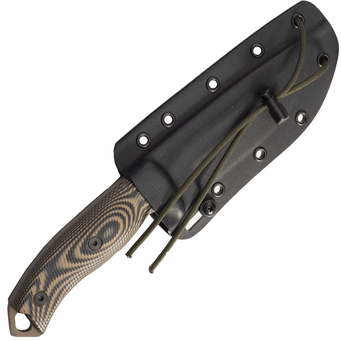 Kvalitné puzdro Kydex s viacerými montážnymi otvormi umožňuje variabilné nosenie na opasku aj upevnenie na výstroj. Vďaka tomu je ESEE Model 5 spoľahlivým parťákom pre bushcraft, survival, EDC do tvrdých podmienok aj záchranné scenáre.