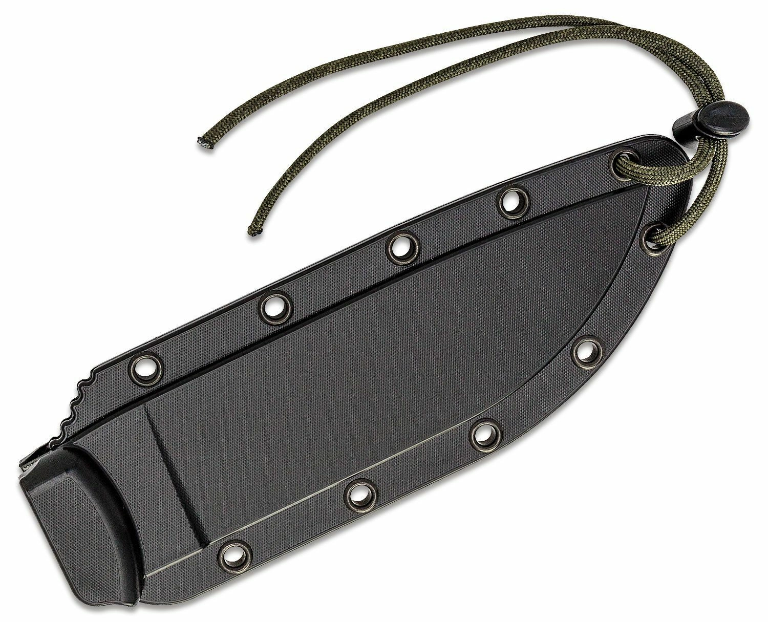 Tvarované puzdro s očkami pre viac spôsobov uchytenia drží nôž pevne na mieste a chráni čepeľ pri prenášaní v teréne.