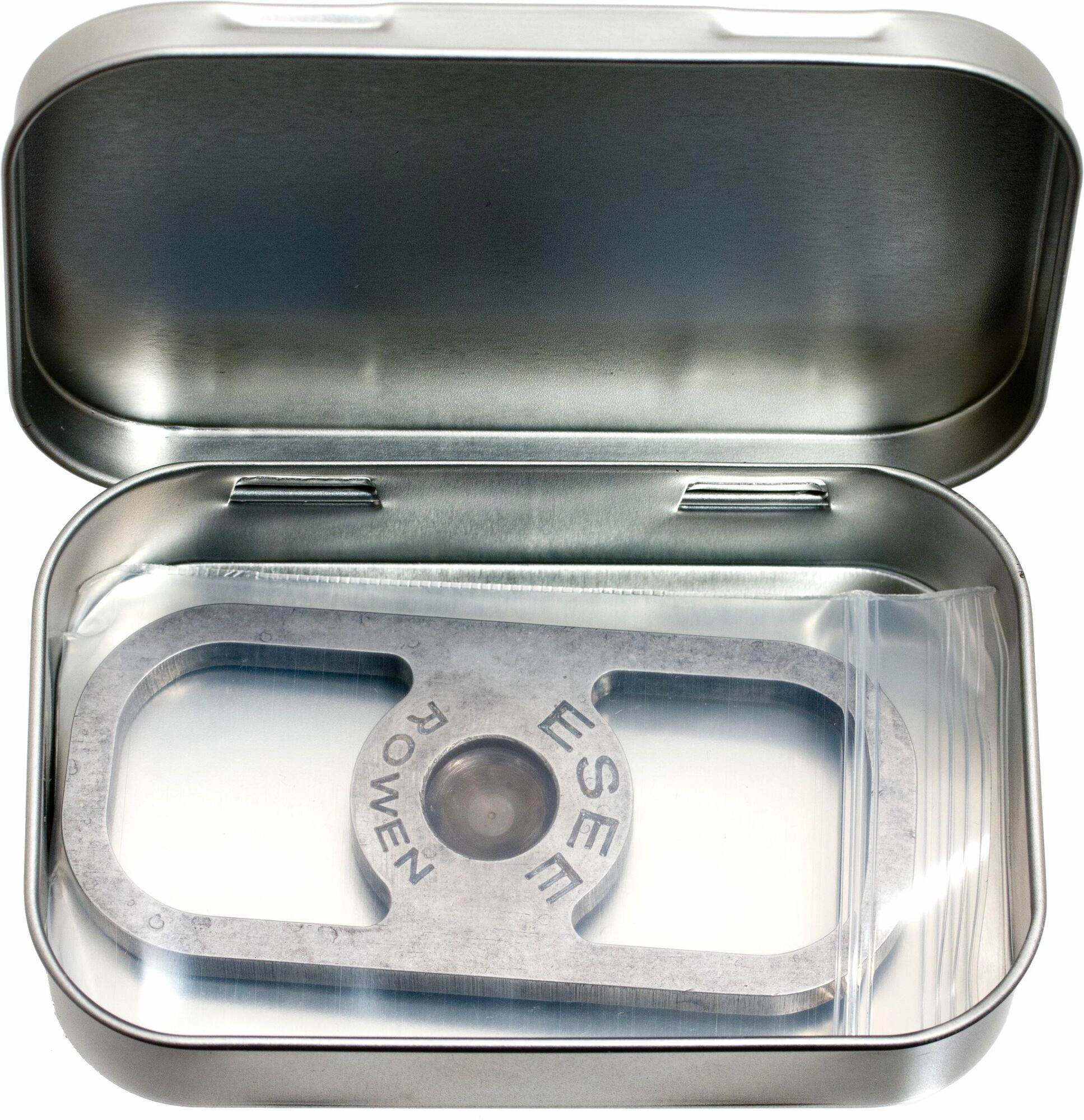 Premyslený tvar pridáva viac funkcií v jednom: ostré hrany slúžia ako účinná škrabka na ferro tyč a stredový hrot použijete ako tŕň pre lukový vrták. Dodávaná plechová škatuľka so sklopným viečkom je perfektná na výrobu zuhoľnateného textilu (char cloth) a na bezpečné uloženie drobných podpaľovačov.