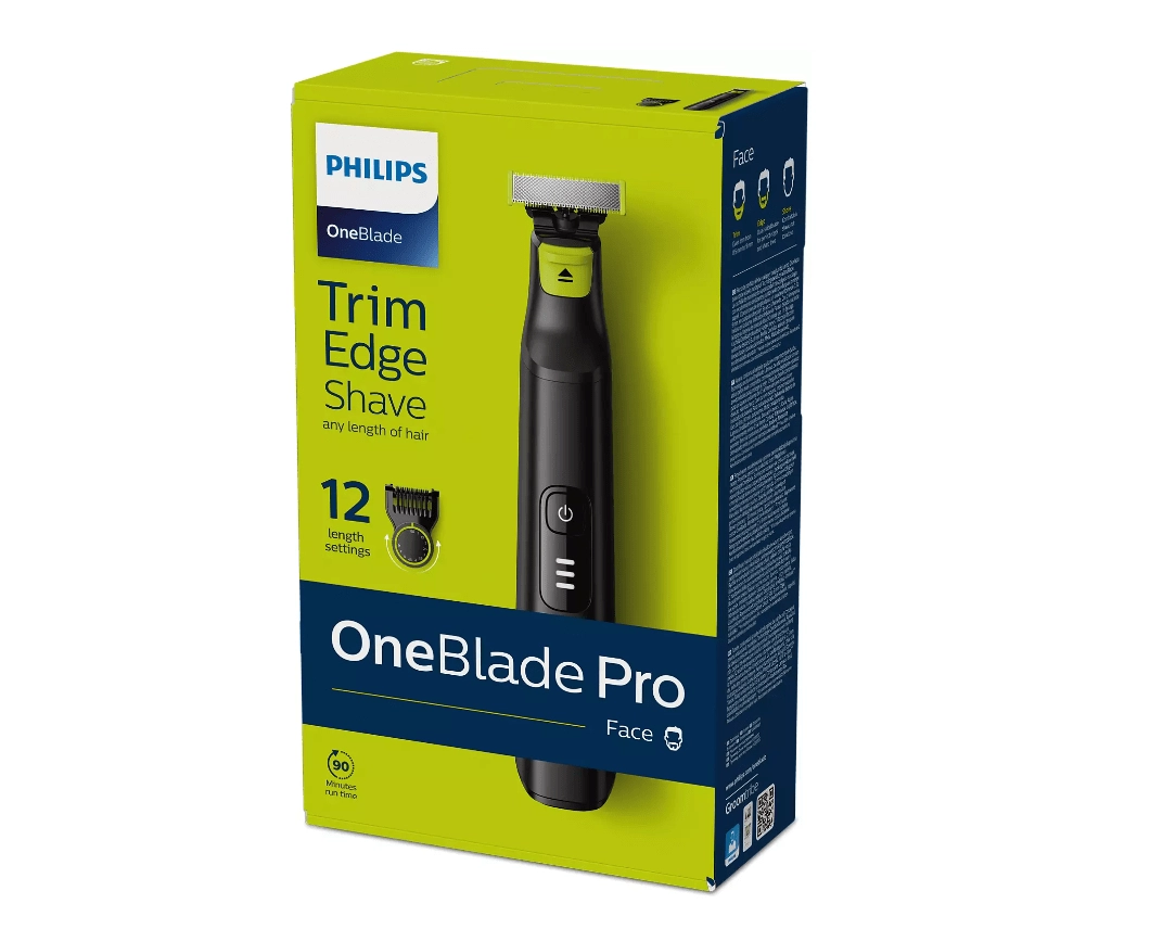 Hybridný zastrihávač Philips OneBlade na úpravu fúzov a tela zvláda zastreihávanie, tvarovanie línií aj hladké holenie chĺpkov akejkoľvek dĺžky. Vďaka britu s výkonom 200 pohybov za sekundu, klzkej povrchovej úprave a zaobleným hrotom je šetrný k pokožke a účinný aj na dlhšie fúzy. Súčasťou je presný hrebeň s 12 dĺžkami (0,5–9 mm) pre perfektné strnisko aj dlhšiu bradu, obojstranná čepeľ pre precízne línie a možnosť suchého aj mokrého použitia. Rýchle nabíjanie 1 hodinu zaistí až 90 minút bezdrôtovej prevádzky.