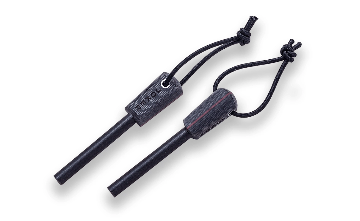 - Kompletná výbava: kožené puzdro, kresadlo a 2 m paracordu v balení.
