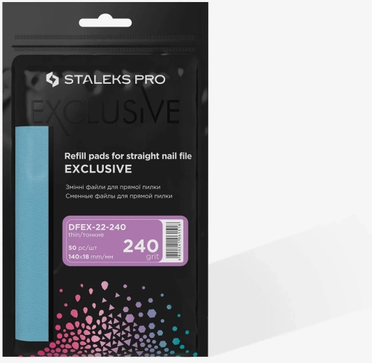 Hľadáte profesionálny výsledok a maximálnu hygienu pri úprave nechtov? Jednorazové pilníky Staleks Exclusive 22 so zrnitosťou 150 sú vyrobené z prémiového švajčiarskeho brúsiva, ktoré si dlhodobo udržiava svoje vlastnosti. Tenké telo pilníka so spoľahlivým lepiacim základom zabezpečuje presnú prácu bez zbytočného tlaku a pohodlné použitie.