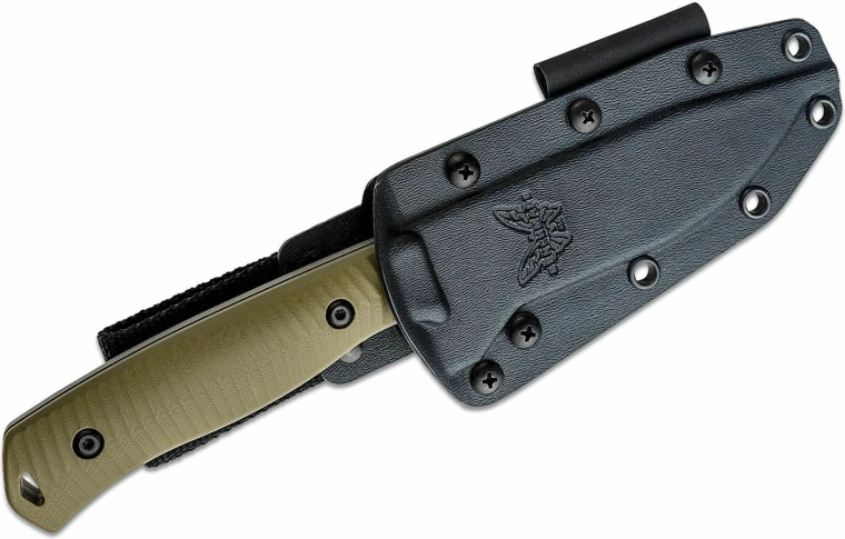 Ergonomická rukoväť z vrstveného kompozitu G10 s výraznou textúrou, jimpingom na chrbte čepele a prstovou oporou poskytuje maximálnu kontrolu aj v rukaviciach. Kydex‑typ púzdra z materiálu Boltaron umožňuje bezpečné nosenie na opasku, má viac montážnych otvorov a praktickú slučku na kresadlo – ideálne pre survival výbavu.