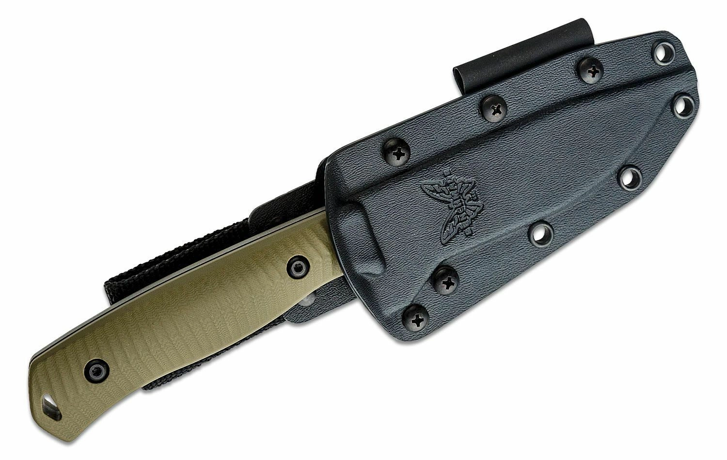 Textúrované črienky G10 zaisťujú istý úchop aj za mokra. Odolné púzdro Boltaron umožňuje bezpečné nosenie na opasku a má slučku na kresadlo.