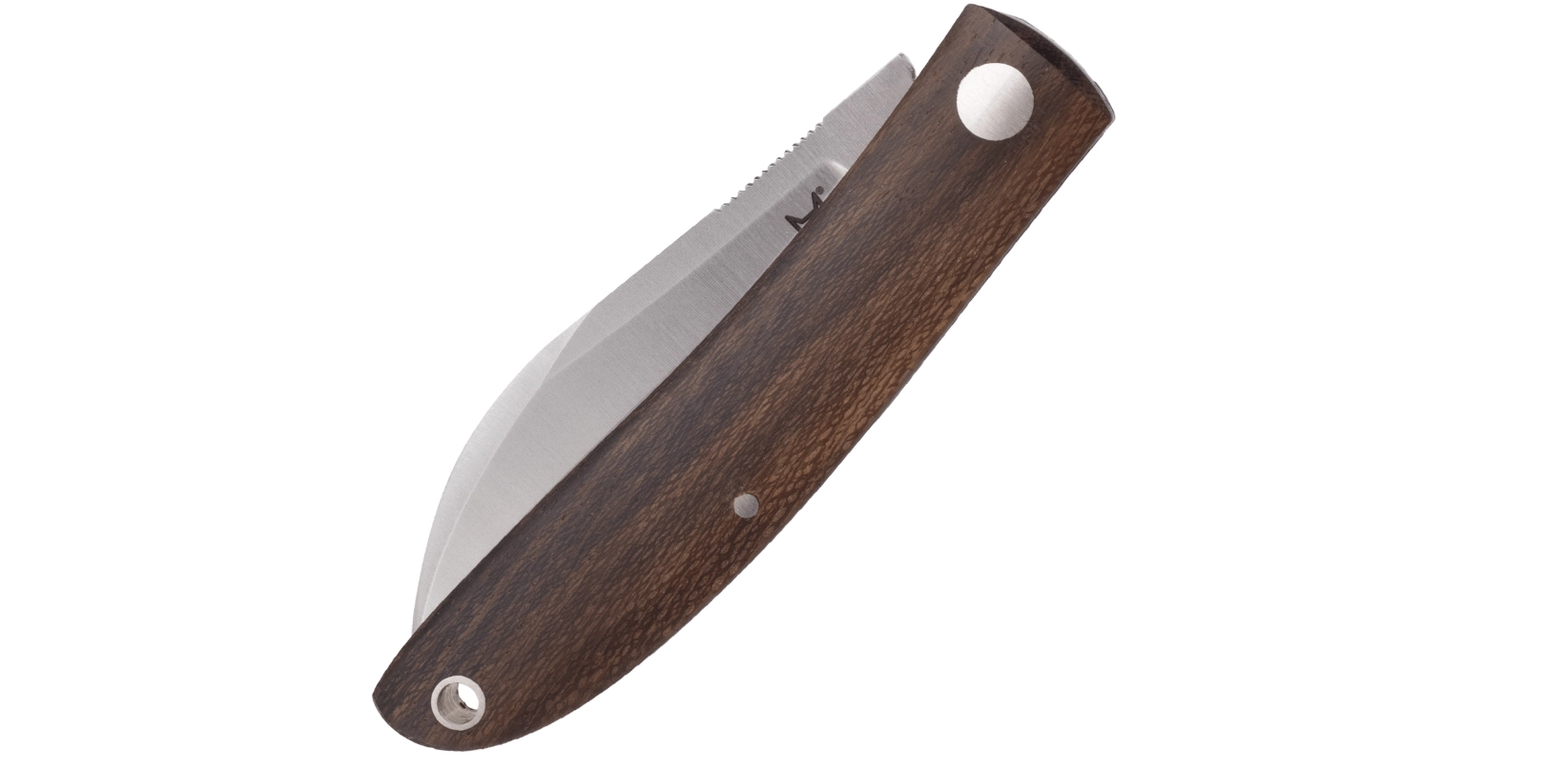 Luxusné črienky z dreva Ziricote príjemne padnú do ruky, doplnené o otvor na šnúrku pre jednoduché vytiahnutie z vrecka. Nôž je dodávaný s kvalitným koženým puzdrom, ktoré chráni čepeľ aj rukoväť pri nosení.